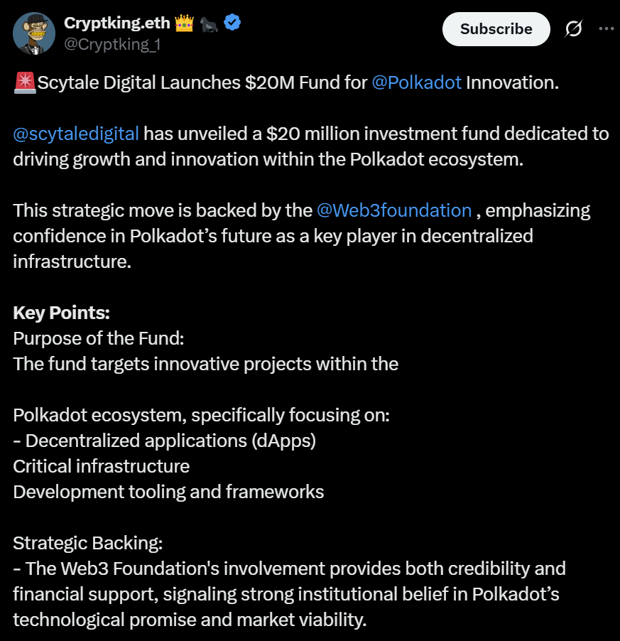 Skytale Digital debuts $ 20m dollars polkadot fond ecosystem